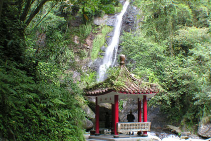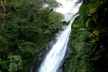 新寮瀑布發源於新寮山,是冬山河的源頭之一,氣勢磅礡,水量頗大,溪水流下後不久,即潛流地下,到冬山鄉八寶村零工城才湧出地面成溪,著名的「松樹門」遊泳池即是以這生生不息的自然湧泉,構成最純淨清涼的游泳環境。